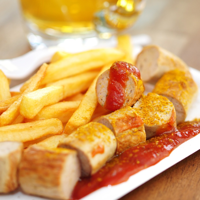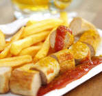 Extra-long Thueringer Bratwurst with Baguette click here for detail Grilled Rotwurst served with roasted potatoes Traditional "Wienerwurst" and potato salad with mayonnaise dressing Berliner "Currywurst" click here for detail Original "German hamburgers" are made of a combination of pork, beef, onions, egg, breading and a variety of spices. They are intended to be enjoyed hot or cold without a bun. click here for detail Rotisserie Chicken - Broiled till fat is nearly completely reduced and skin is ultra crispy.