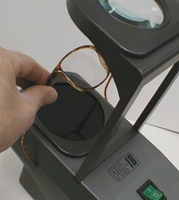 lens; holding the lens approximately 7.0 - 8.0 cm. from